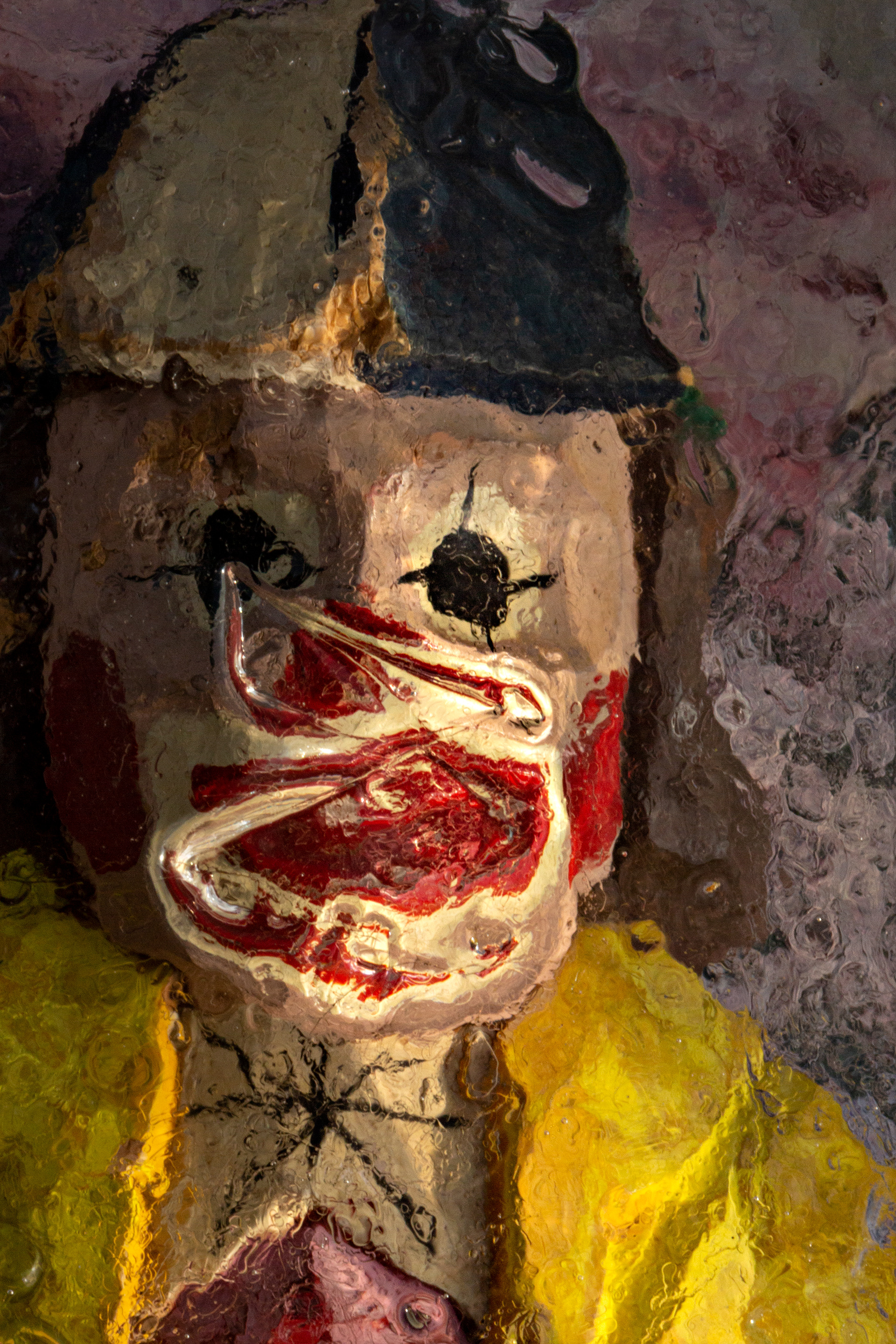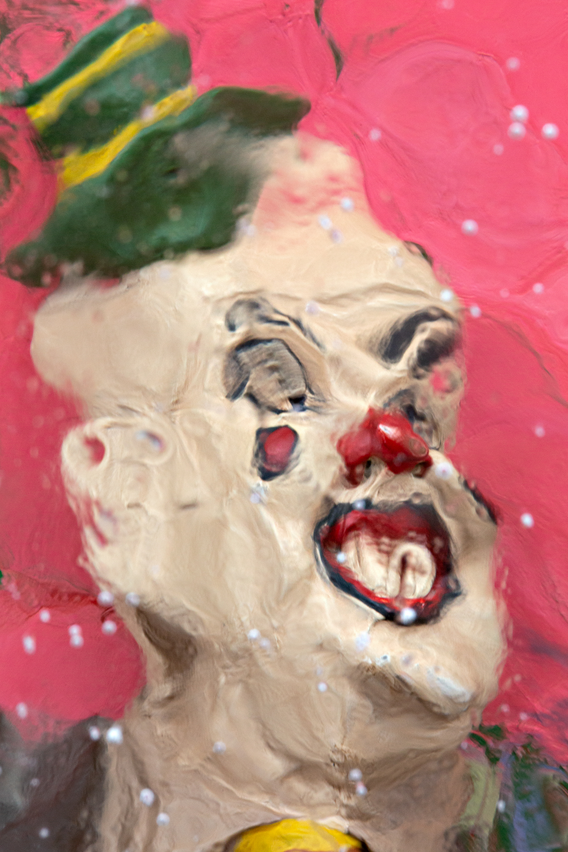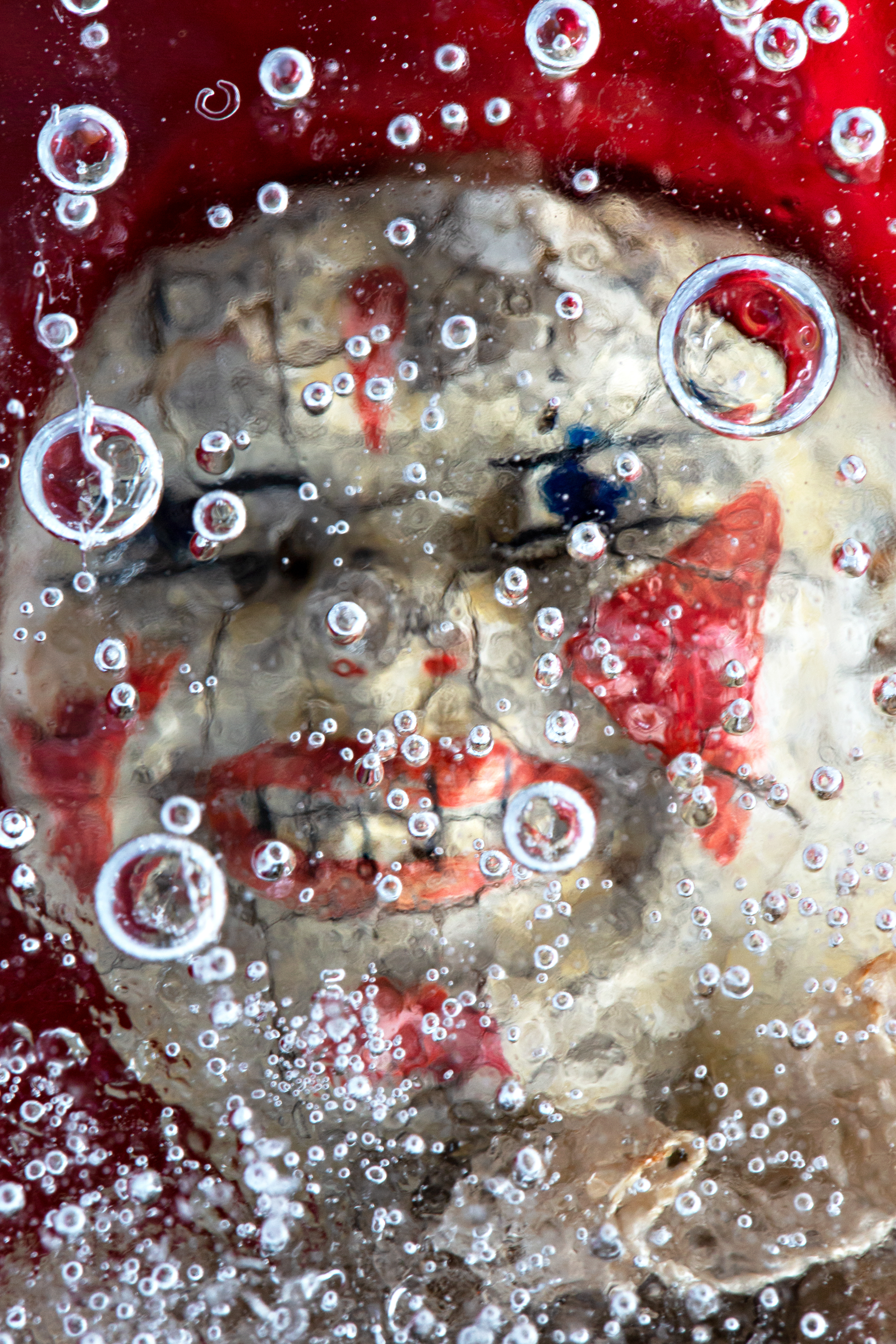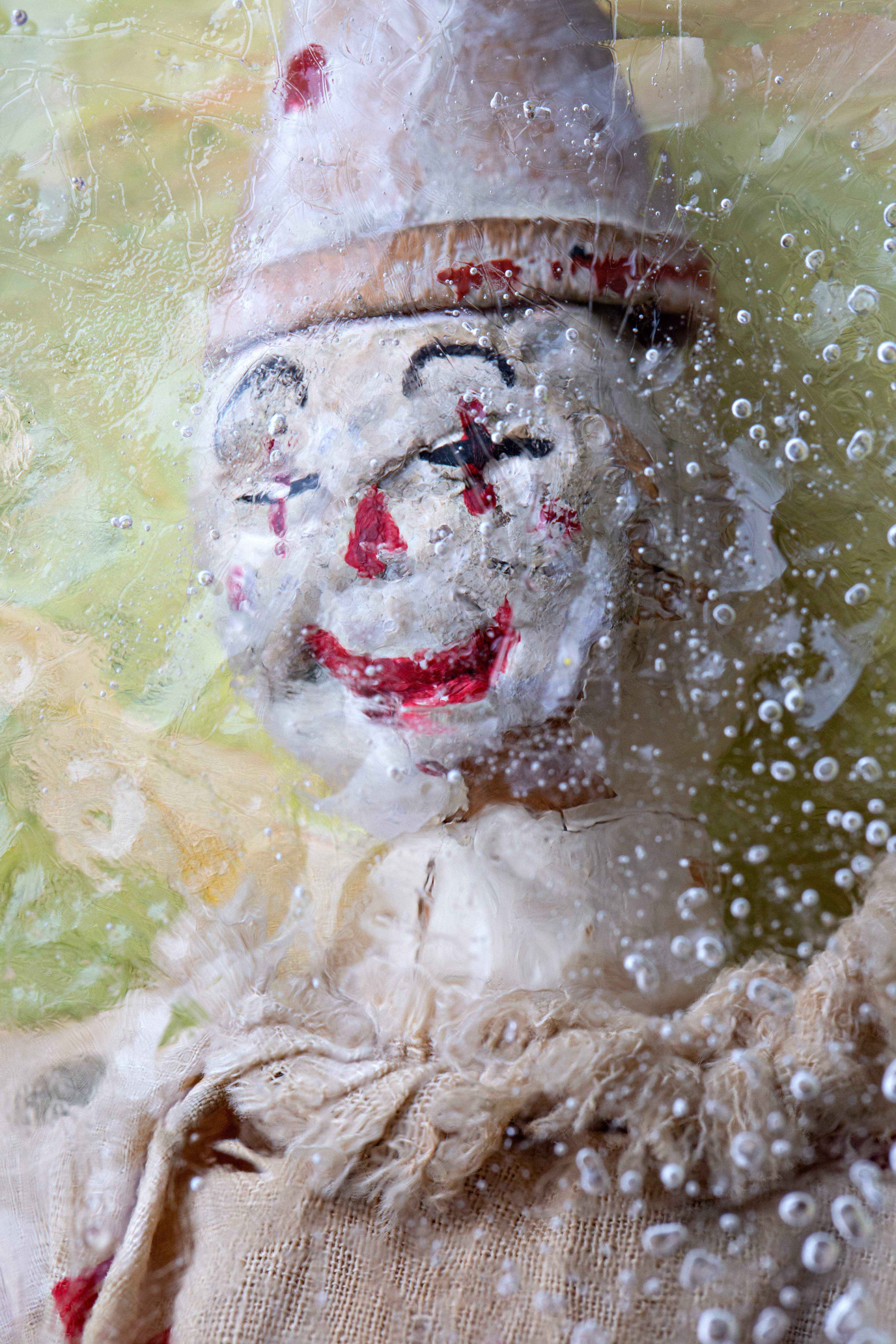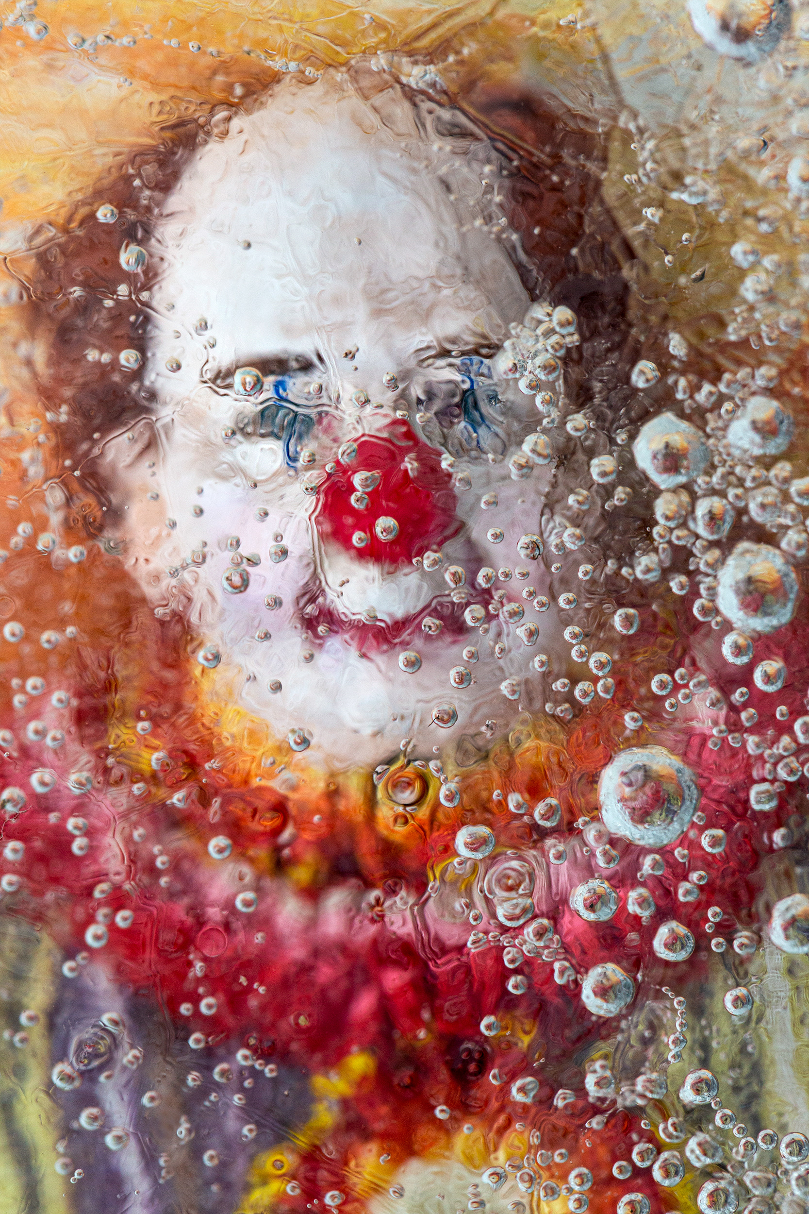 Children, however, often burst into tears not laughter, when confronted by the frozen expression on a clown’s painted face. These ice portraits reveal the complex characters they sense beneath the masks.