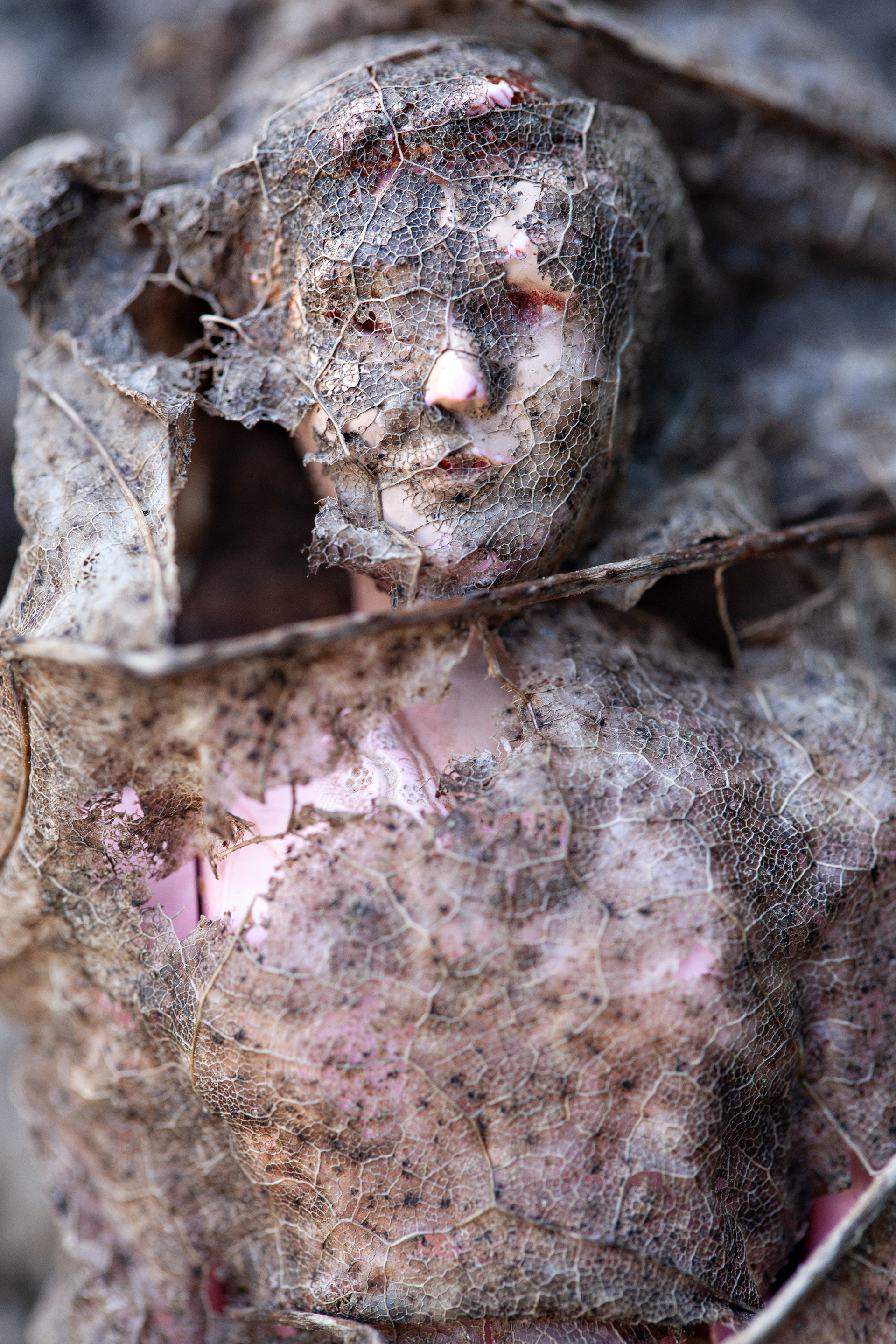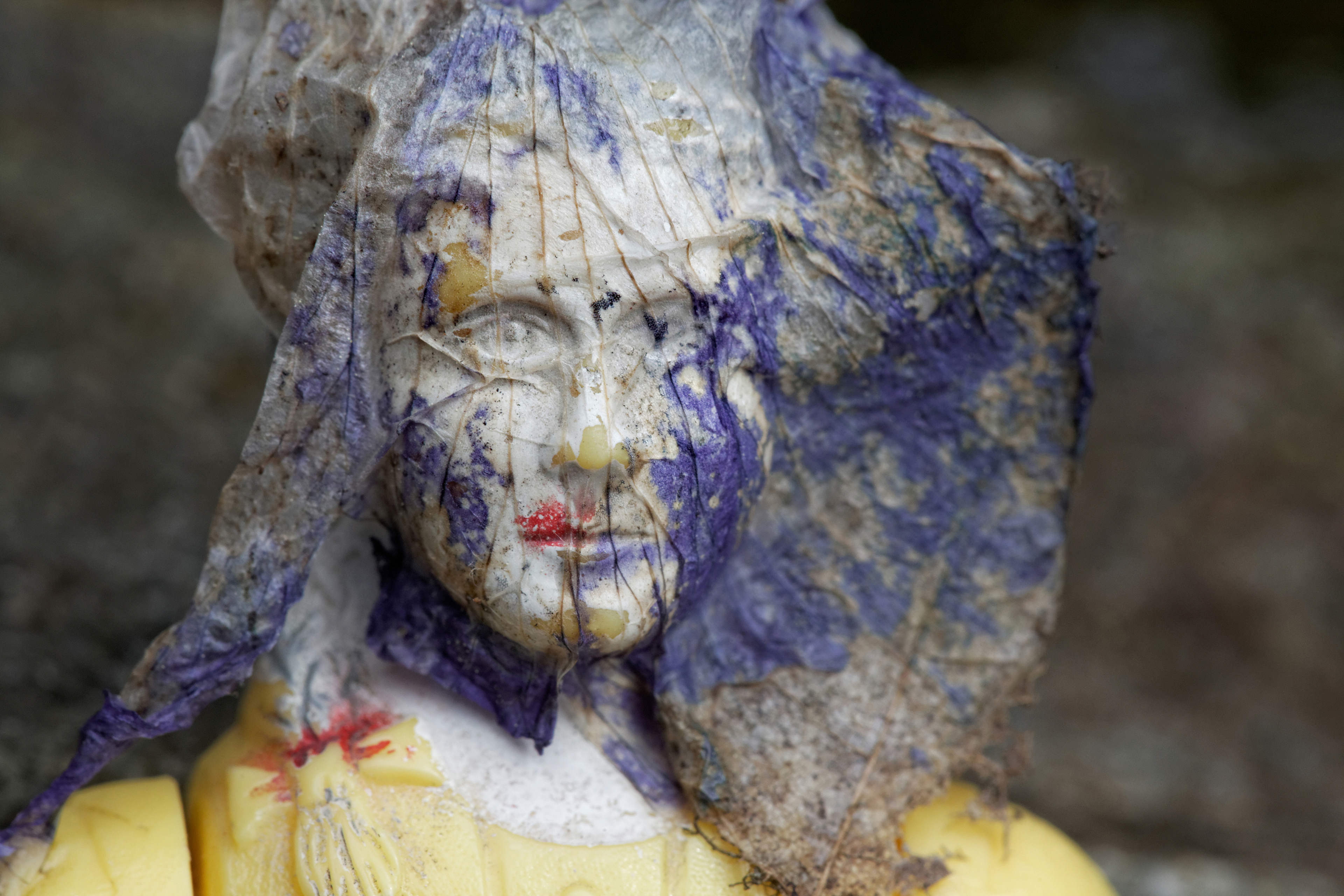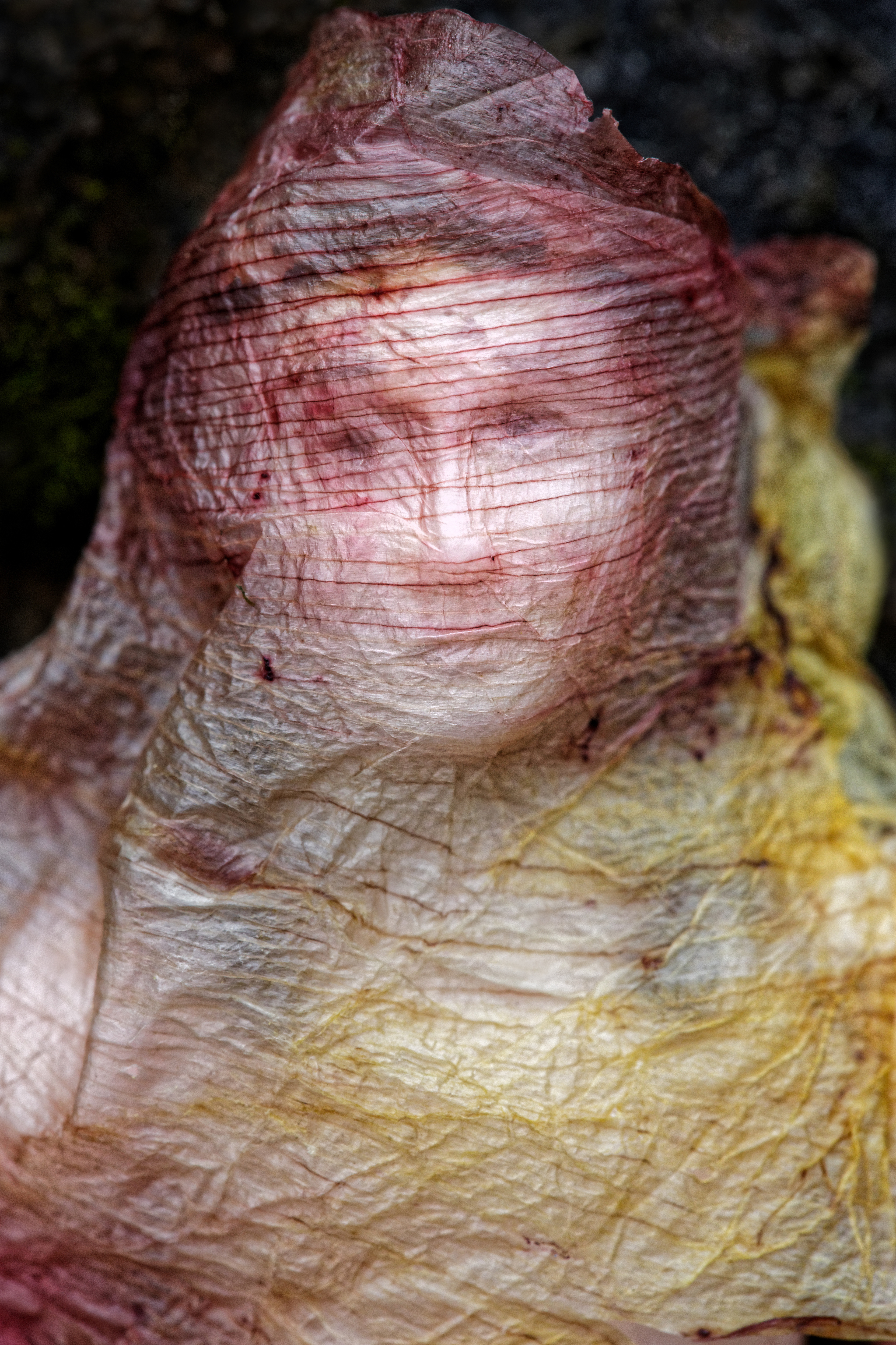 These images imbue commonplace objects with the heart's deepest longings and fears. Both embraced and isolated by elements of the natural world, the figures become metaphors for our conflicted vision of life. From birth cauls to death shrouds we are caught between worlds, sometimes only momentarily, sometimes more permanently. Some emerge from this transitional space, others do not.