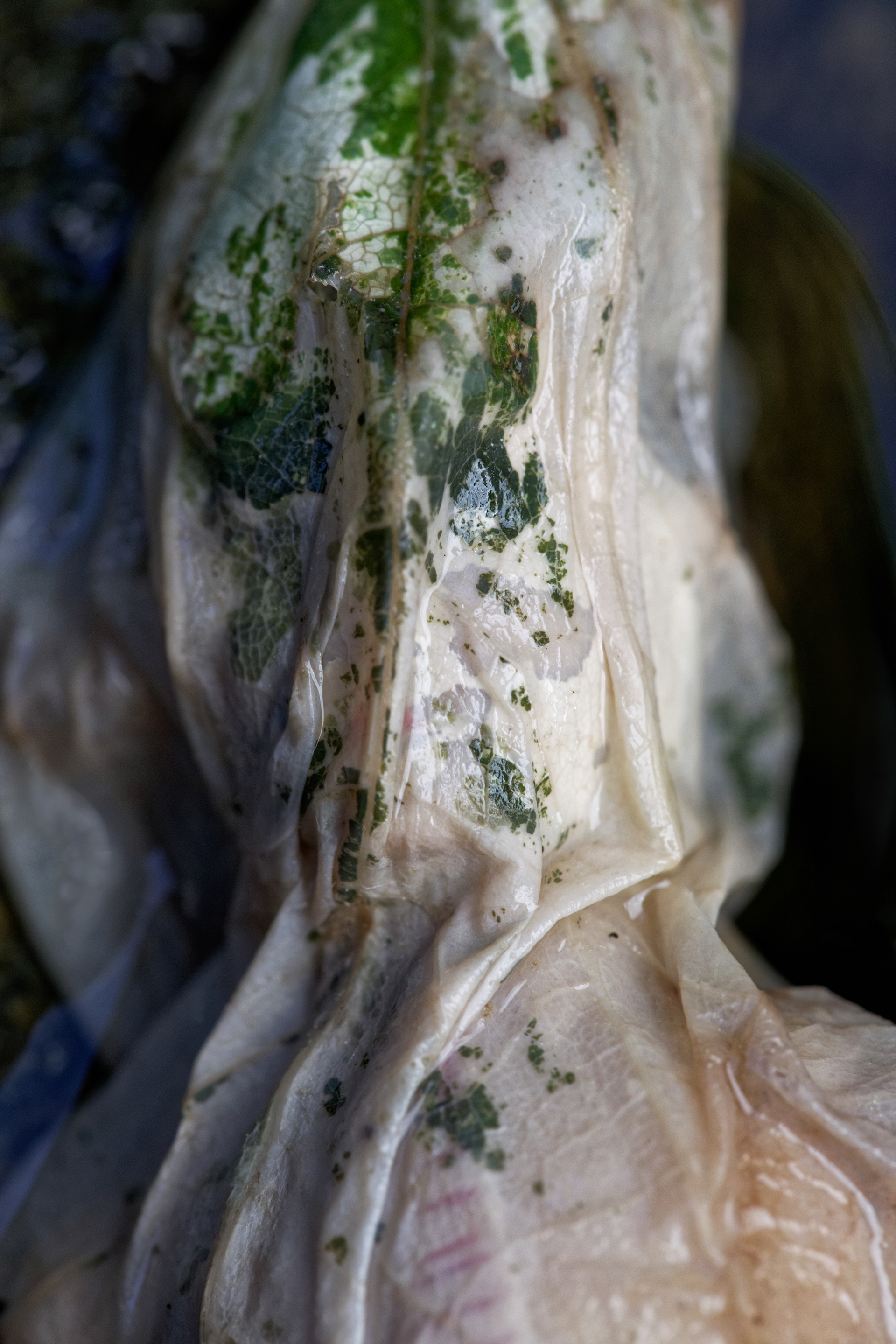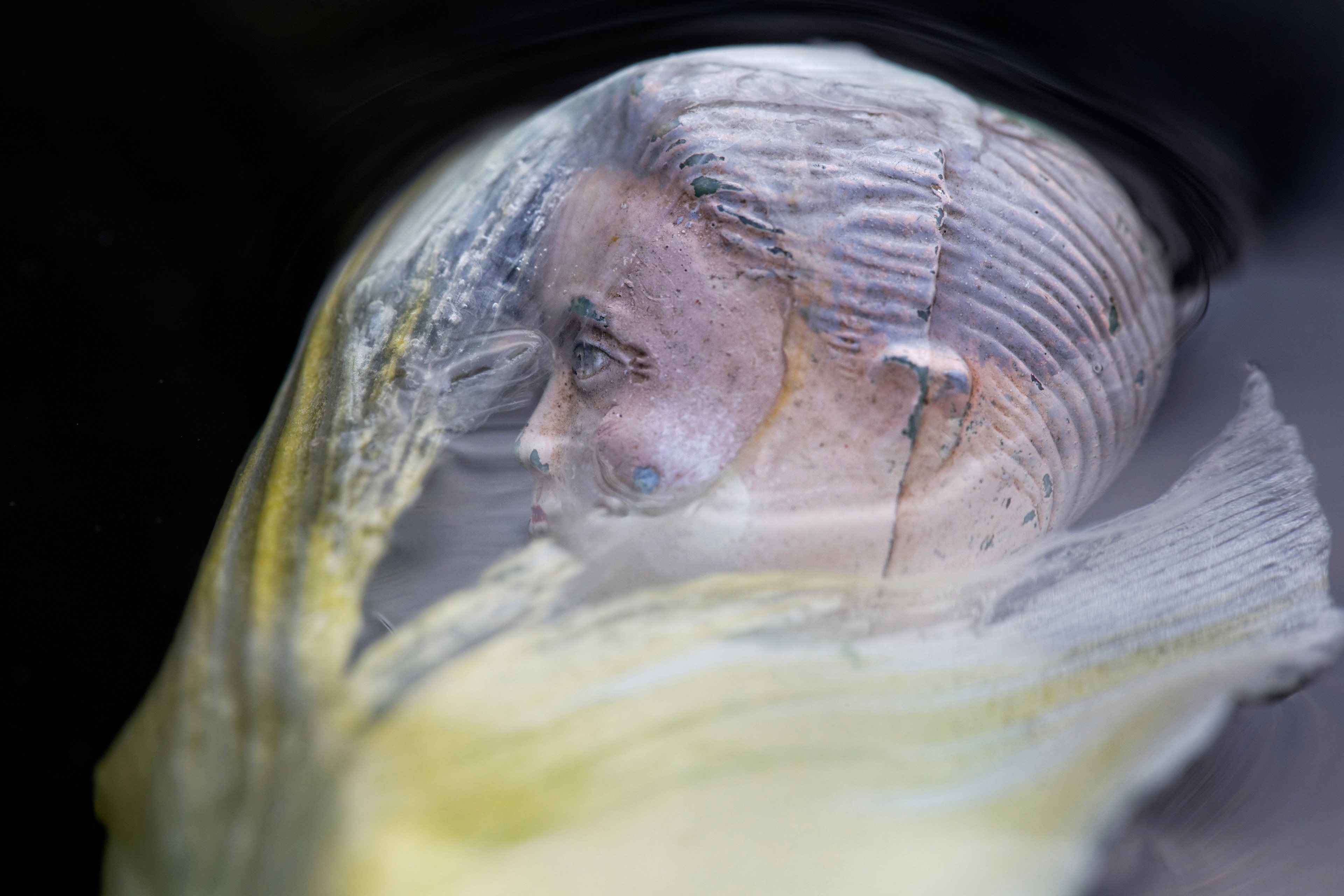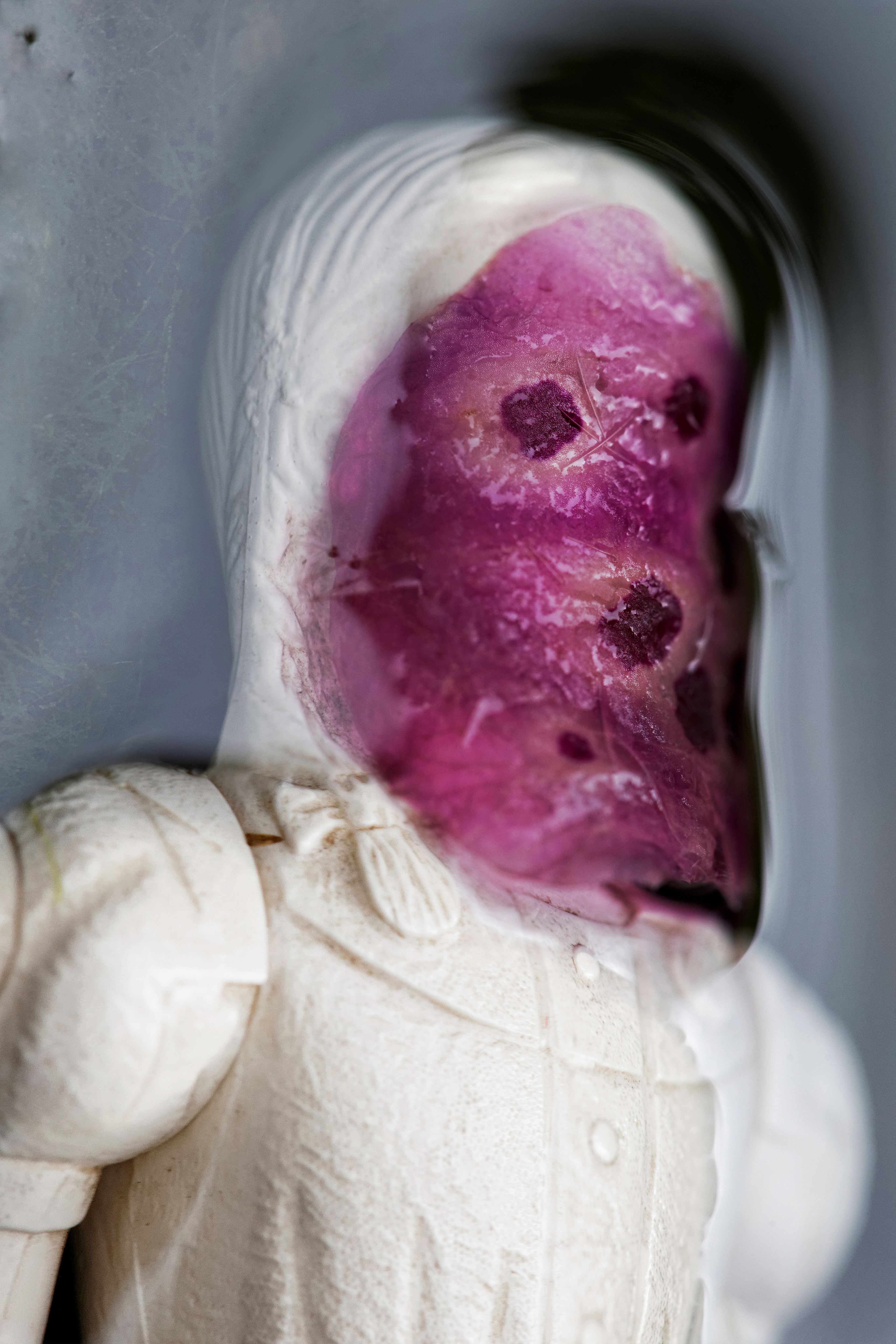 These images imbue commonplace objects with the heart's deepest longings and fears. Both embraced and isolated by elements of the natural world, the figures become metaphors for our conflicted vision of life. From birth cauls to death shrouds we are caught between worlds, sometimes only momentarily, sometimes more permanently. Some emerge from this transitional space, others do not.